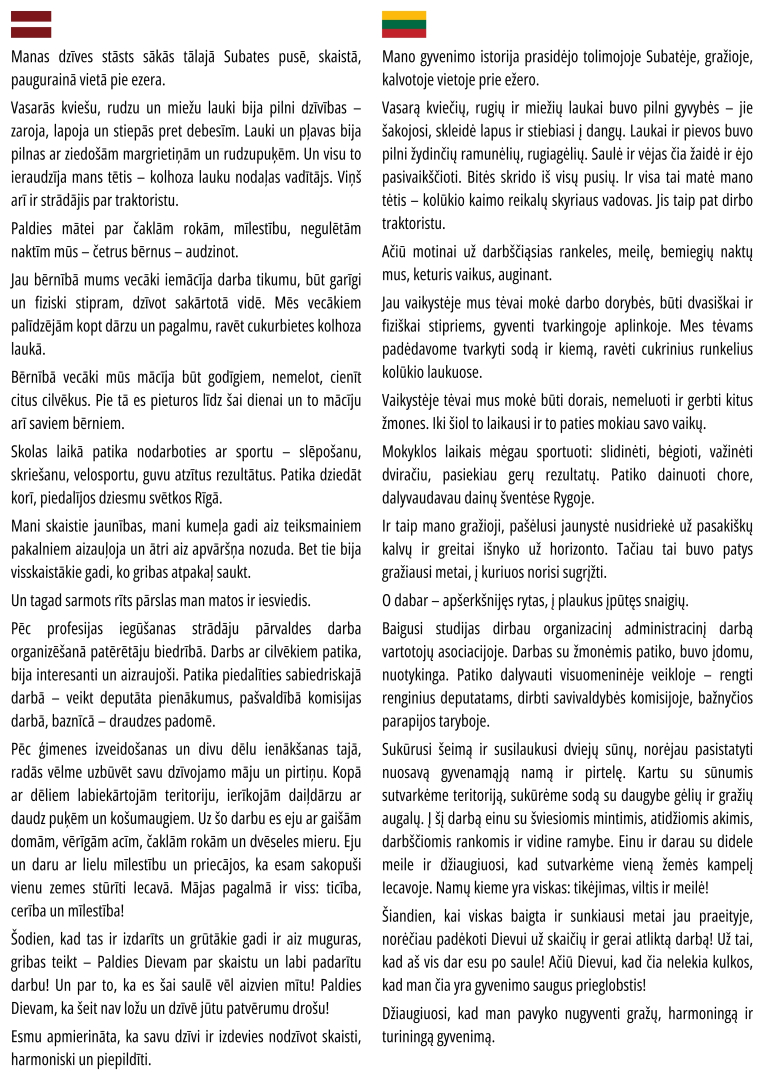 Fotoizstāde ir tapusi projekta “Aktīvas un veselīgas novecošanas veicināšana” ietvaros, ko līdzfinansē INTERREG VI-A Latvija–Lietuva programma 2021.-2027. gadam. Projekta mērķis ir veicināt senioru un cilvēku ar invaliditāti sociālo iekļaušanu, uzlabojot pakalpojumu pieejamību un atbalstot aktīvu, apzinātu un veselīgu novecošanu un ilgāku neatkarīgu dzīvi Latvijas-Lietuvas pierobežas reģionos. Vairāk par projektu: https://ej.uz/active_aging