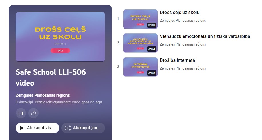 1. Drošs ceļš uz skolu: https://youtu.be/ITPhqgUQiFQ